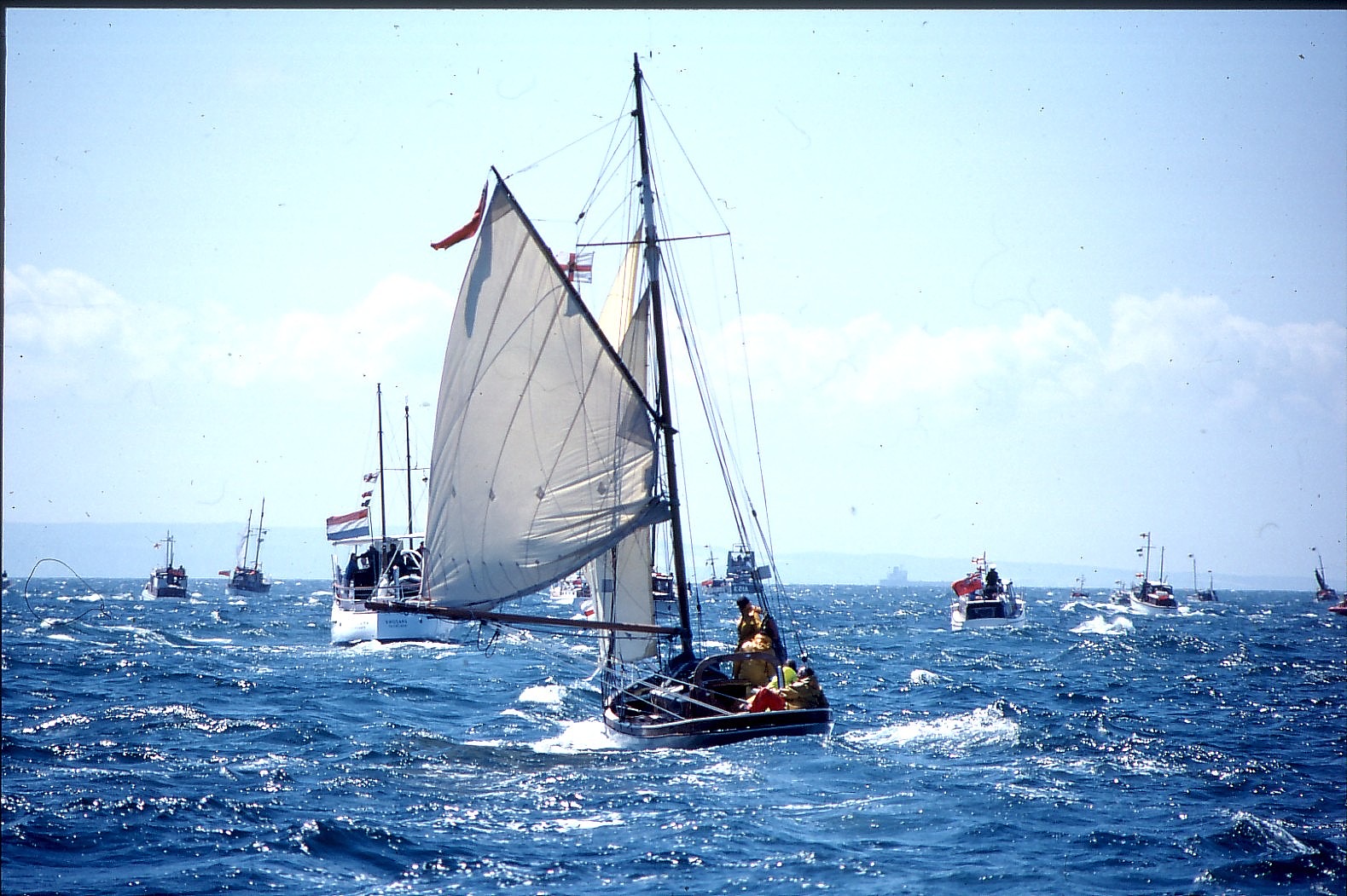 • 60′, 40-50 tons. Originally just sails (gaff ketch), now also a diesel.