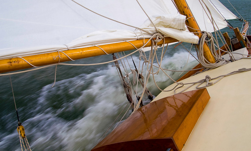 • 60′, 40-50 tons. Originally just sails (gaff ketch), now also a diesel.