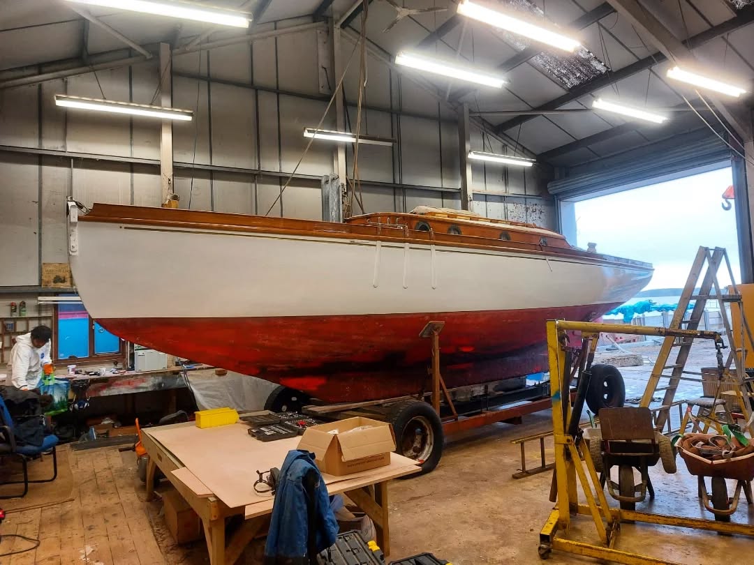 Previous names Temper and Trent 2. Previous owners: Paul King (1949), Leo Upton (1967), RW Tattersall (1976), Peter Maddison (1980), Philip A Peg (1994, 1997). Major restoration undertaken by Richard Smithson in 2022: ‘She was in a terrible state with her keel pushed right up into the center of the boat. I restored this boat by myself and basically only the planks are original and even some of them are new. This project took me a year but I was retired, working on it nearly every day.’