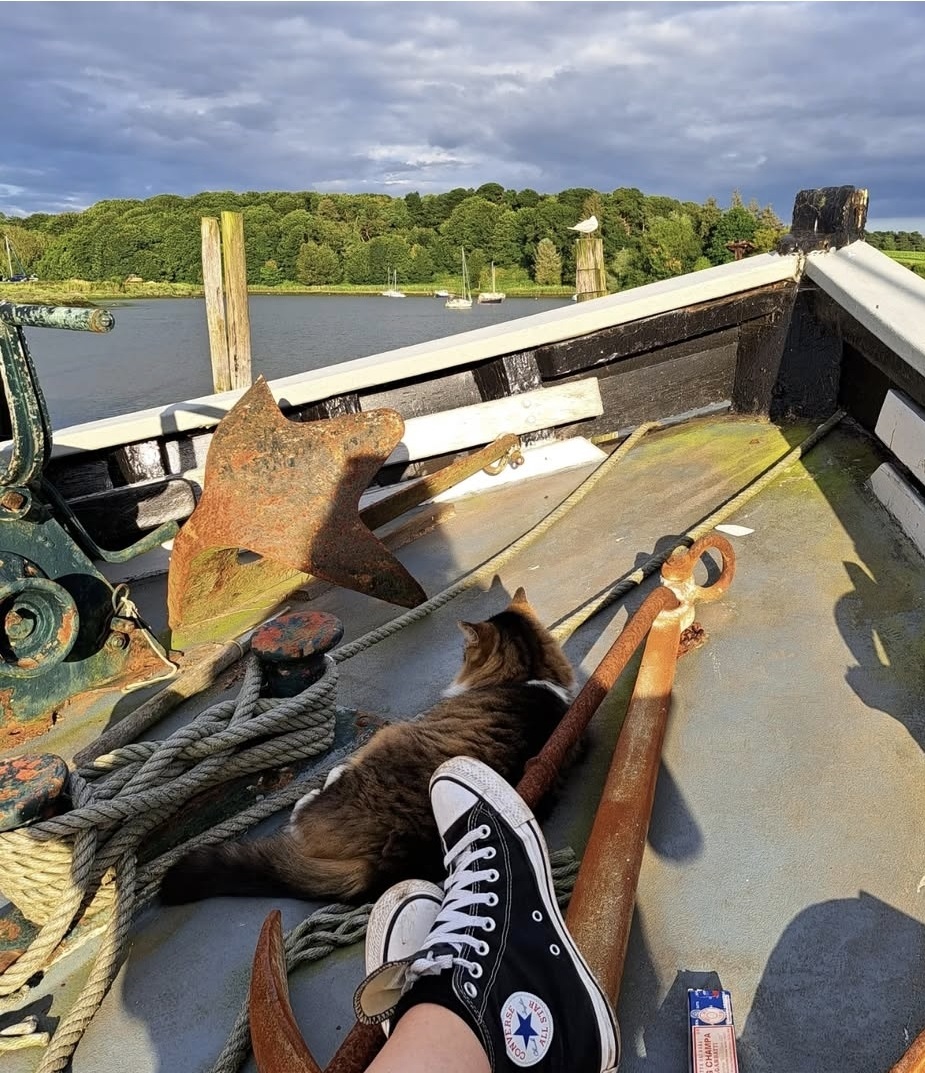 “Unfortunately I know very little of Cromarty‘s pre-Woodbridge history. I’ve heard suggestions that she was used to carry eels from the Netherlands to the UK, and that she was converted to a houseboat on the continent in the 1970s, but don’t have hard evidence for either of these. In 1997 Lelke Tet (or similar), as she was then called, was bought by Damien and Dorothy Reilly in Groningen, Netherlands. She was sailed to her current mooring in 1998 and renamed Cromarty, apparently where Damien and Dorothy honeymooned.”