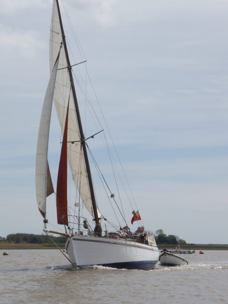 I won’t keep you waiting for the answer: in 2025 the oldest boat, still floating on the Deben is TRY AGAIN, built in Guernsey by George le Maitre in 1861. Then, she was registered as an oyster fishing boat. These days she’s a thoroughly capable family yacht, moored at Ramsholt during the summer and owned by Matthew Longfellow. Many ‘owners’ of these historic vessels – Matthew may be one of them – prefer to describe themselves as custodians. They know that it takes unremitting vigilance, care, effort and expenditure of both time and money to ensure that the boat will continue floating even when the former owners are six feet under.