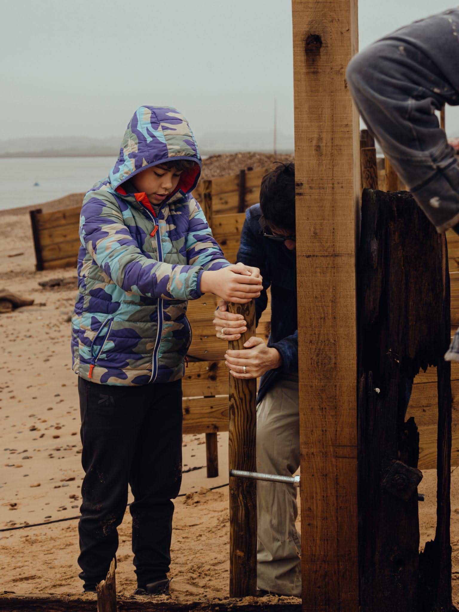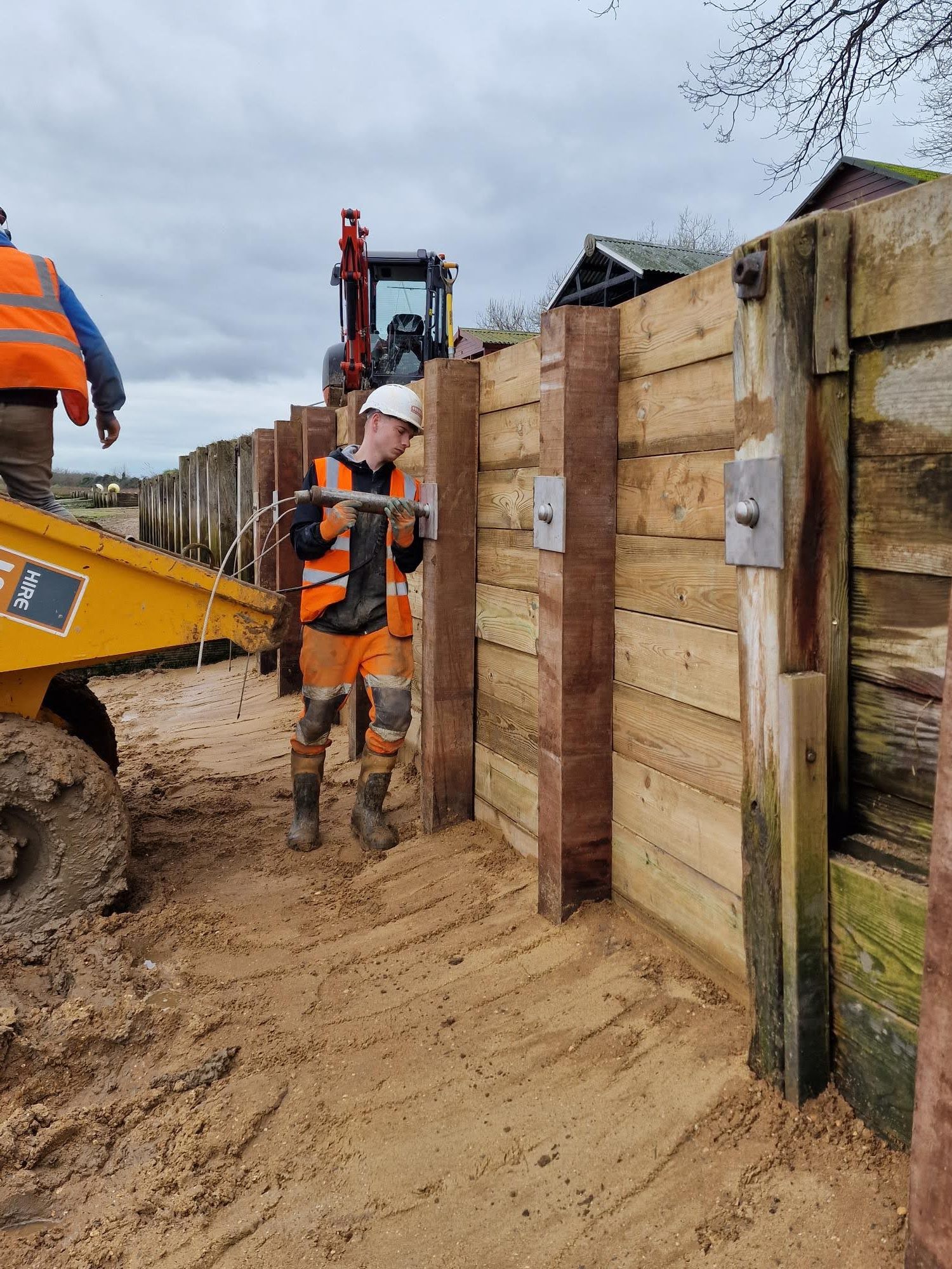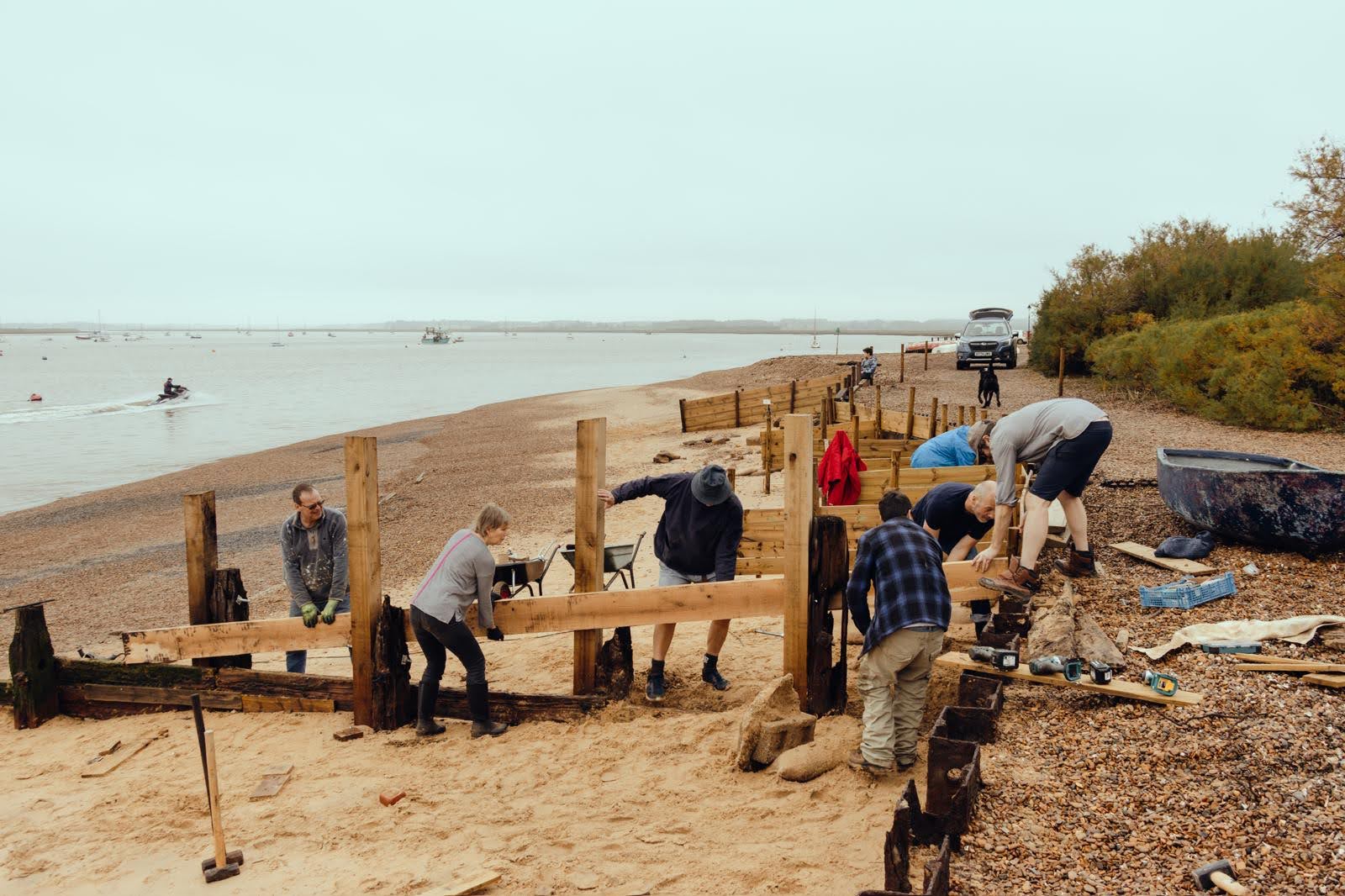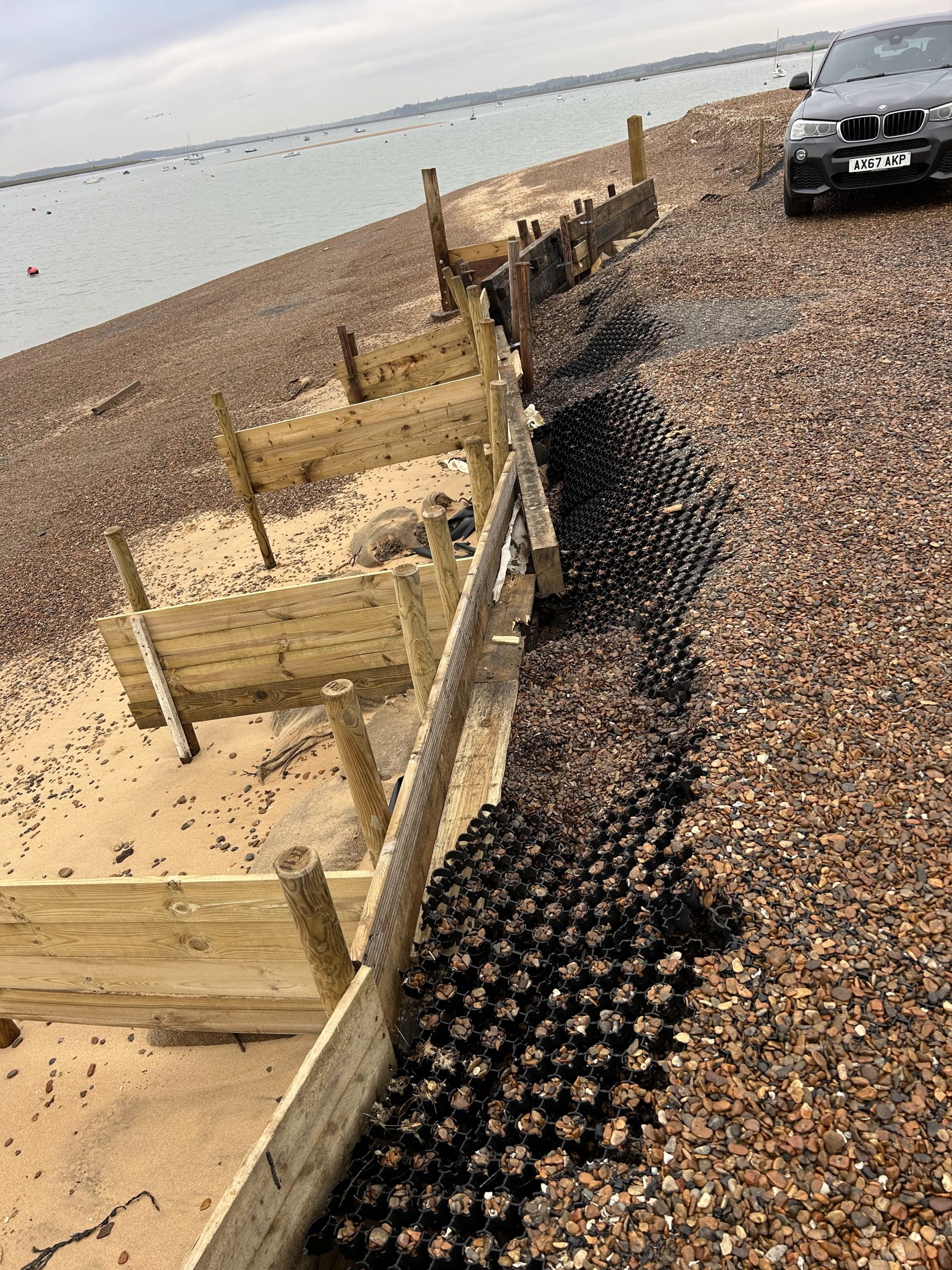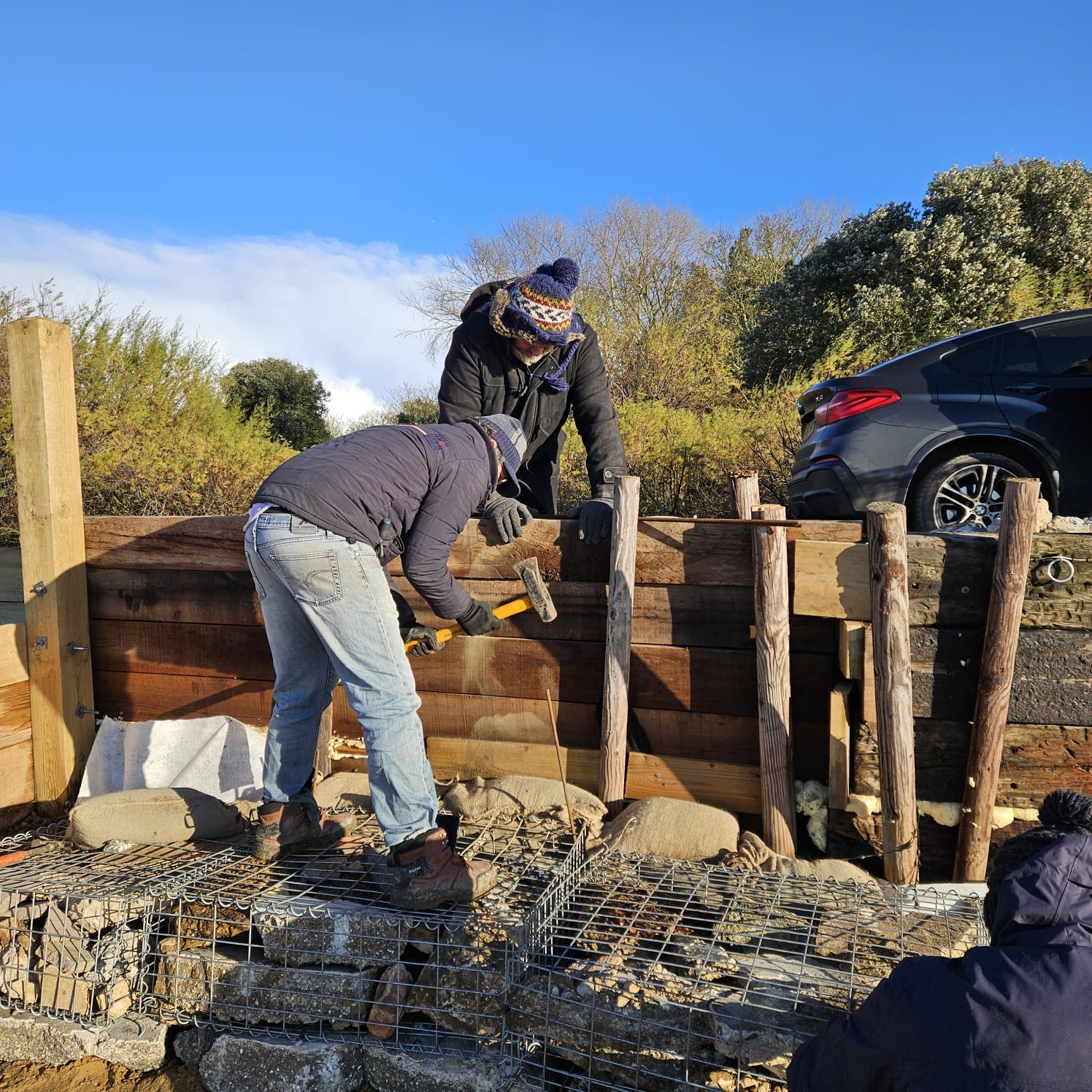 - Built a wooden retaining wall about 30 metres long with mini “groynes” sticking out from it at 90 degrees.