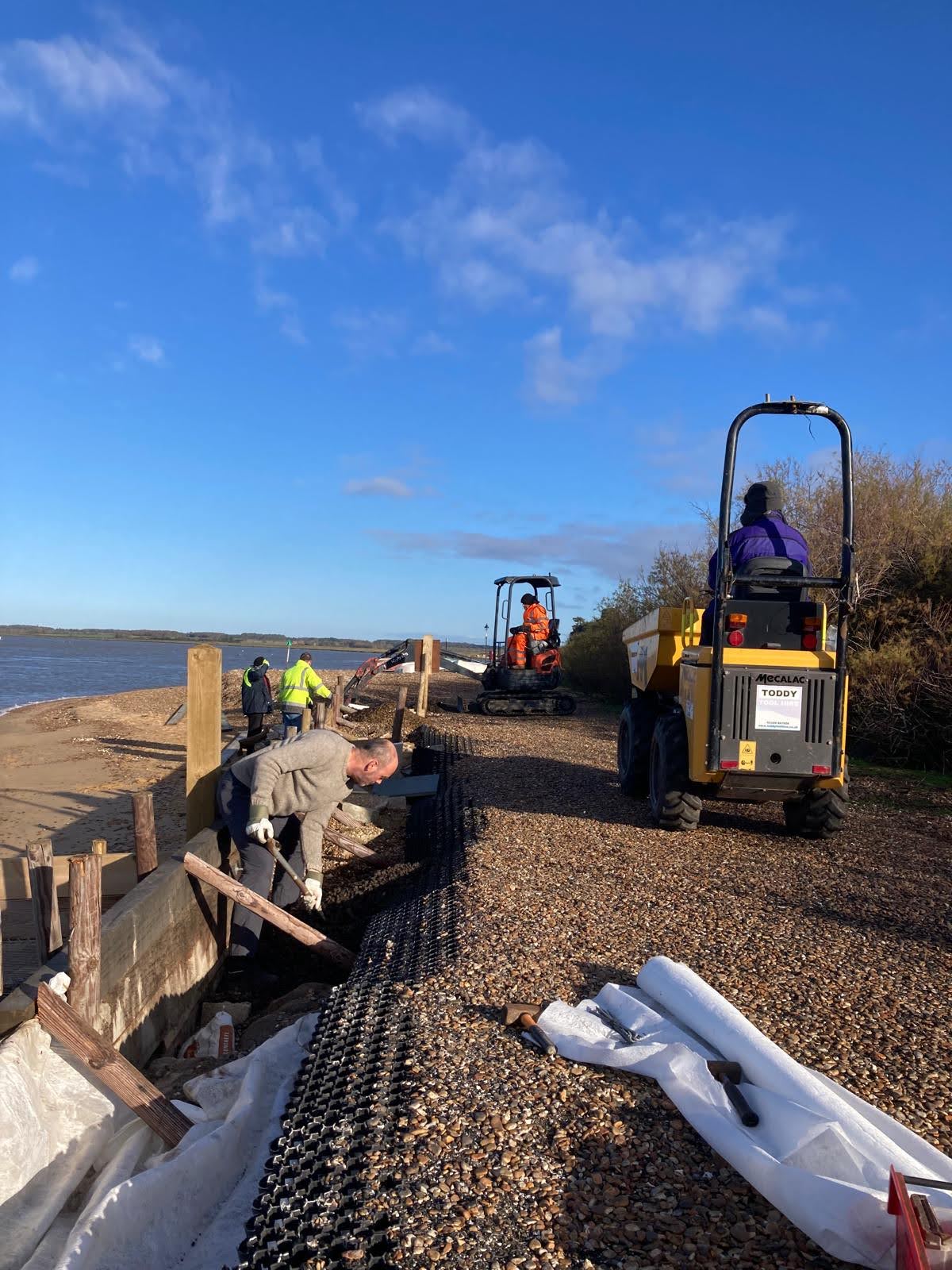 Since the early autumn, numerous club members have been helping out, forming work parties to build and repair sea defences, contacting local authorities and other bodies to raise awareness, and raising funds to pay for materials already used and for work that will be needed in the near future.